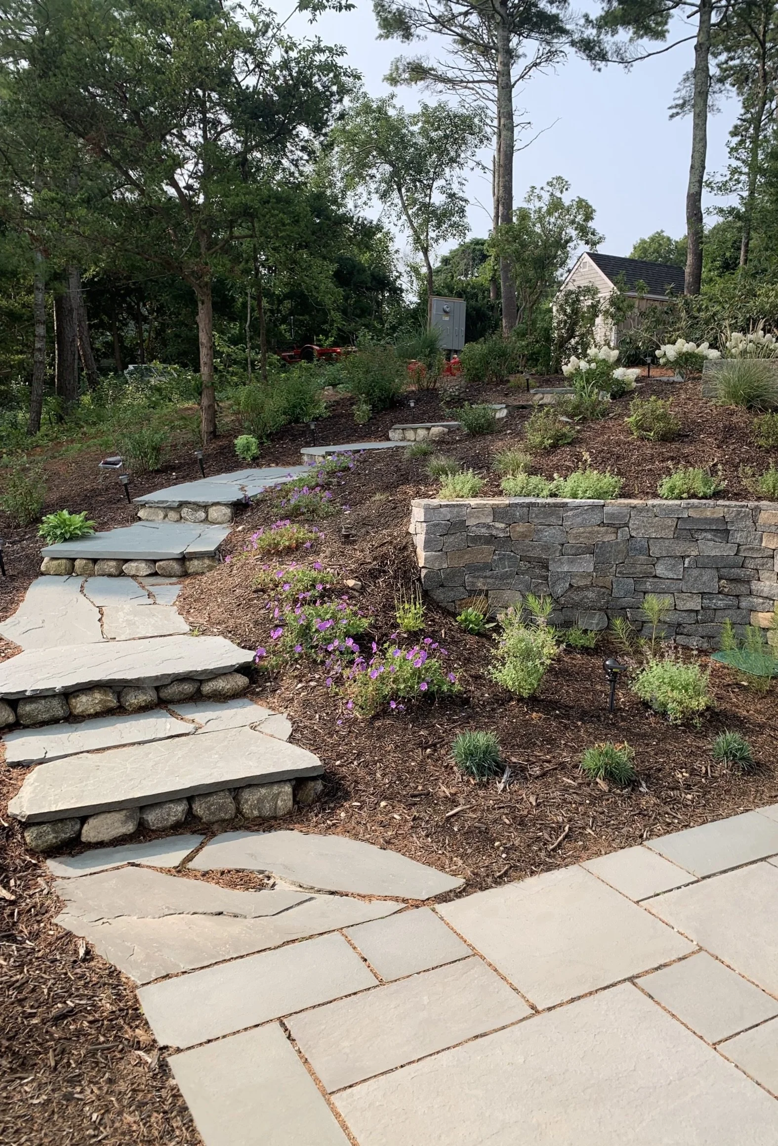 Stone walls to maintain slope