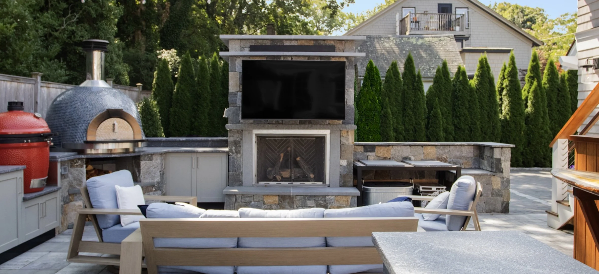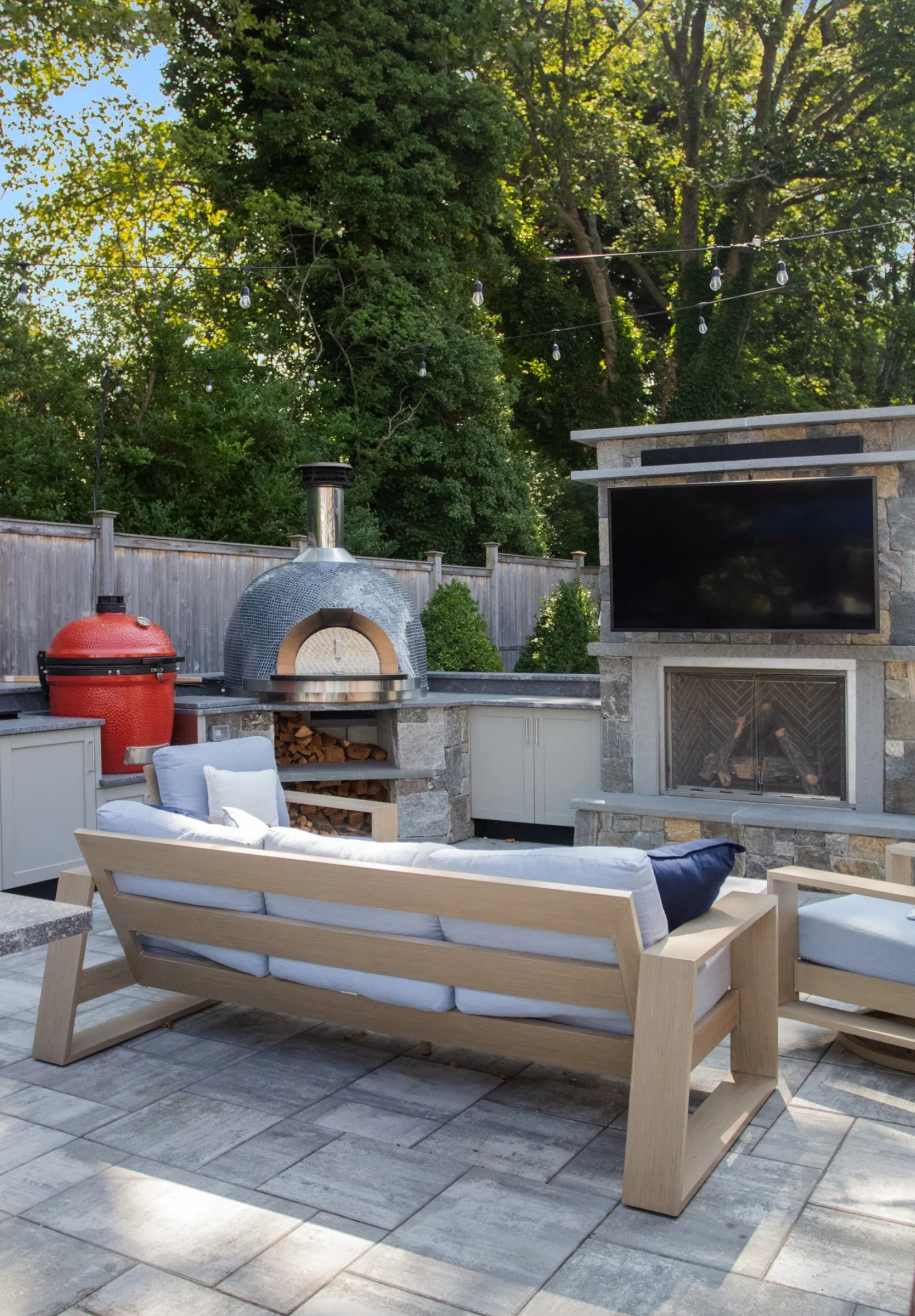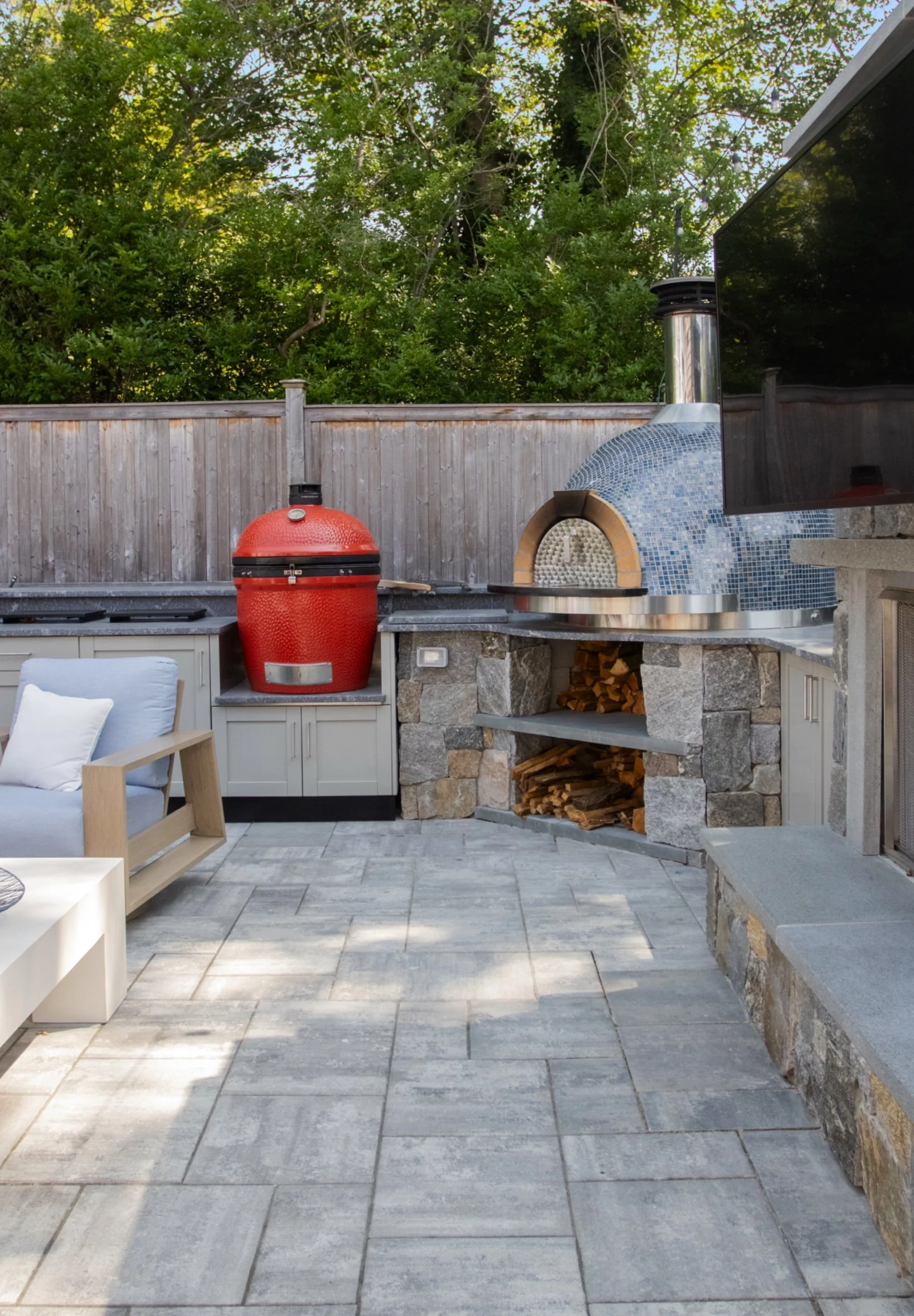 Outdoor kitchen with egg and pizza oven